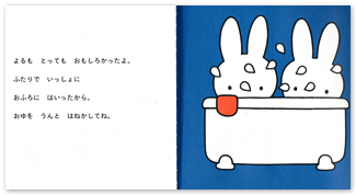 「ふたりは まず ながいこと おしゃべりをしました。」だって、うさこちゃんは女の子なんですもの。あえて、この描写がはいっているところをみると、ブルーナさんは女の子がおしゃべりが大好きなことをちゃんと知っているようです。