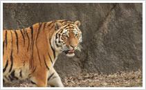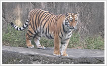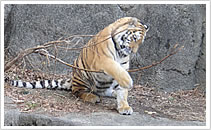 2歳になったアムールトラのテンちゃんは、冬でも元気いっぱいです。野生では、主に、ロシアと中国東北部の国境を流れるアムール川やウスリー川に生息 more >>