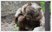 2014年6月15日(日) ウォンバットのヒロキ君、朝、展示場に出ると、スロープの壁でお尻をかきかき! お腹は前足で!! more >>