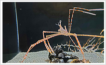 深海を売りにしている水族館では比較的見ることの多いカニですが、非常に脚が細いため10本全て揃っているところを見ることはほとんどないカニで more >>