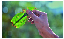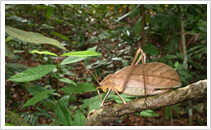 コノハムシはアジアの熱帯地域を中心に何種類かが生息している。写真のオオコノハムシはマレーシアに生息していて、コノハムシの中の最大種である。 more >>