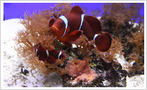 当館では、クマノミたちを雌雄のペアで飼育し、その後産卵が確認されると孵化した仔魚たちを別の水槽に移して育成しています。   more >>