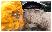 カピバラがジャンボかぼちゃを食べる咀嚼音