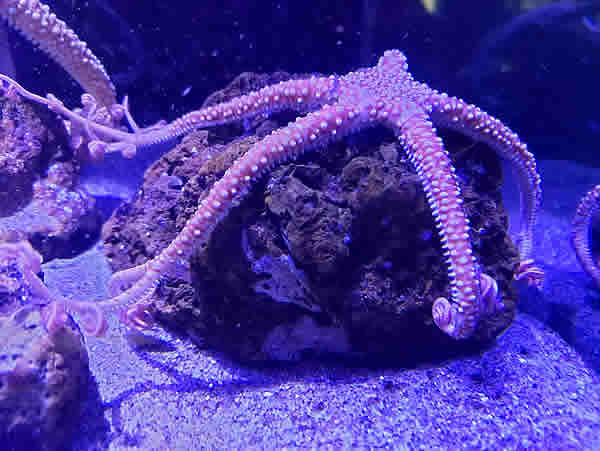 おそらく串本沖から2018年に報告された個体以降は確認されていないように思います。公式な記録はニュージーランド、沖縄沖、長崎沖、串本沖で今回ご紹介するのも串本沖の水深220m~350mの間でとれた個体で、今回は一度に3個体の搬入がありました。もしかしたら世界で5例目かもしれない超貴重な生物なのですが、見た目に可愛げがないのかただのヒトデに見えるのか、全然興味をもってもらえません。むしろこの摩訶不思議で珍妙な姿が深海生物の醍醐味だと思うんですけどね。よく見ると腕先がゆっくり動いていて面白いのに。お客さんを捕まえて説明してみても反応はイマイチ。あんまり動かないからかなぁ。
