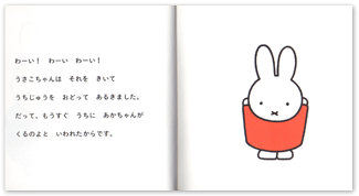 あかちゃんが生まれるまでの間、うさこちゃんは色々な準備をします。あかちゃんのためにかわいいひよこの絵を描いたり、