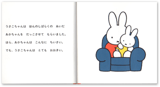 ちいさなうさこちゃんは、おおきなうさこちゃんになって、そう、すてきなお姉ちゃんになったんです。生まれてきた赤ちゃんが、弟だったのか、妹だったのか?それはみなさんのご想像におまかせしたいと思います。