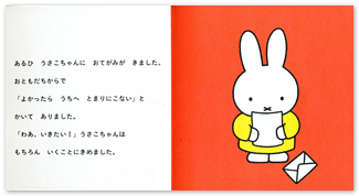 「ふたりは まず ながいこと おしゃべりをしました。」だって、うさこちゃんは女の子なんですもの。あえて、この描写がはいっているところをみると、ブルーナさんは女の子がおしゃべりが大好きなことをちゃんと知っているようです。
